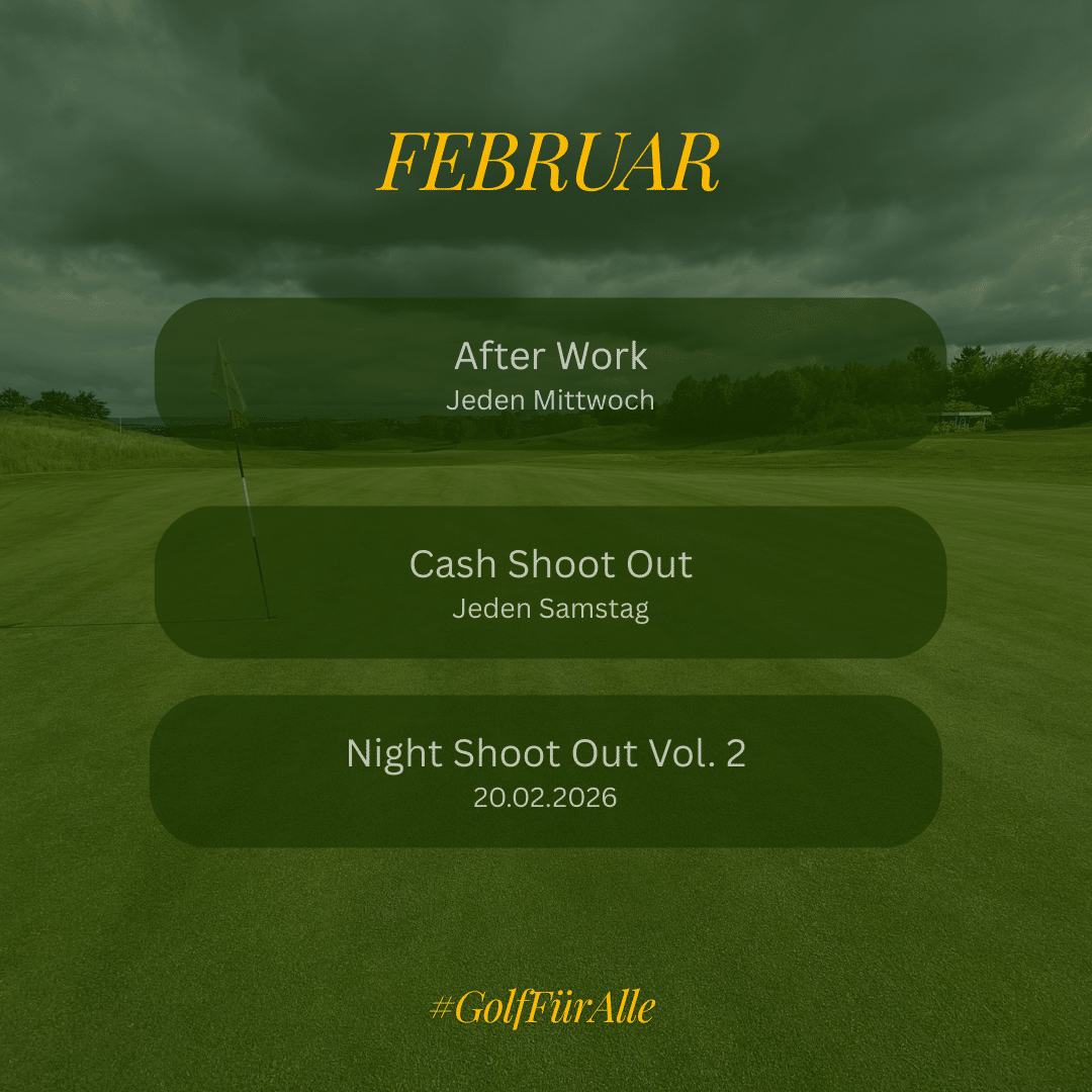 Afterwork Golf Event – jeden Mittwoch, ab 16 Uhr | € 50,- Cash Shootout – jeden Samstag! | 9-Loch Turnier – 31. Januar, ab 12 Uhr! |Afterwork Golf Event – jeden Mittwoch, ab 16 Uhr | € 50,- Cash Shootout – jeden Samstag! | 9-Loch Turnier – 31. Januar, ab 12 Uhr! |